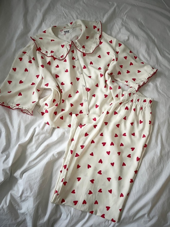 PIŻAMA DAMSKA Z FALBANKAMI SERDUSZKA SPODNIE WISKOZA