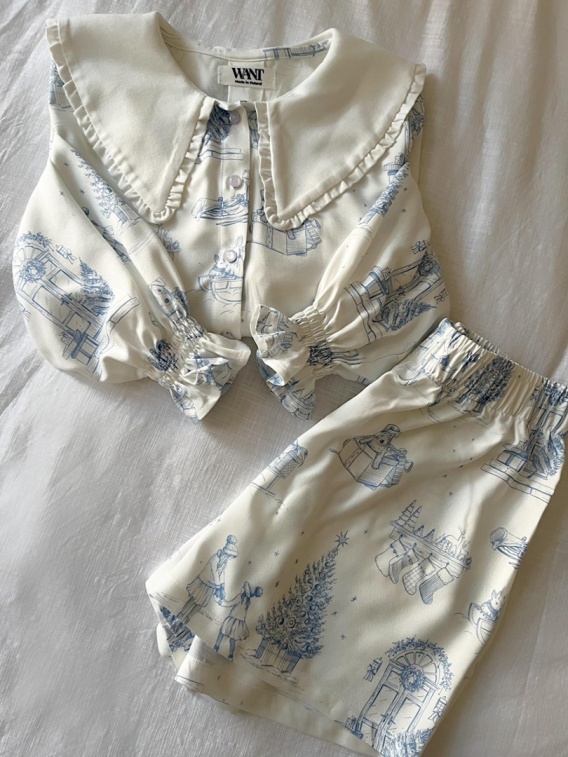 PIŻAMA ŚWIĄTECZNA Z KOŁNIERZYKIEM SPODENKI LUNA BLUE
